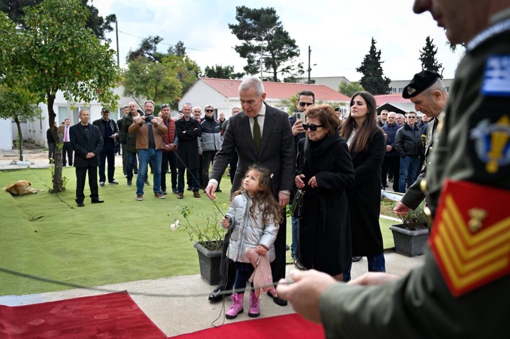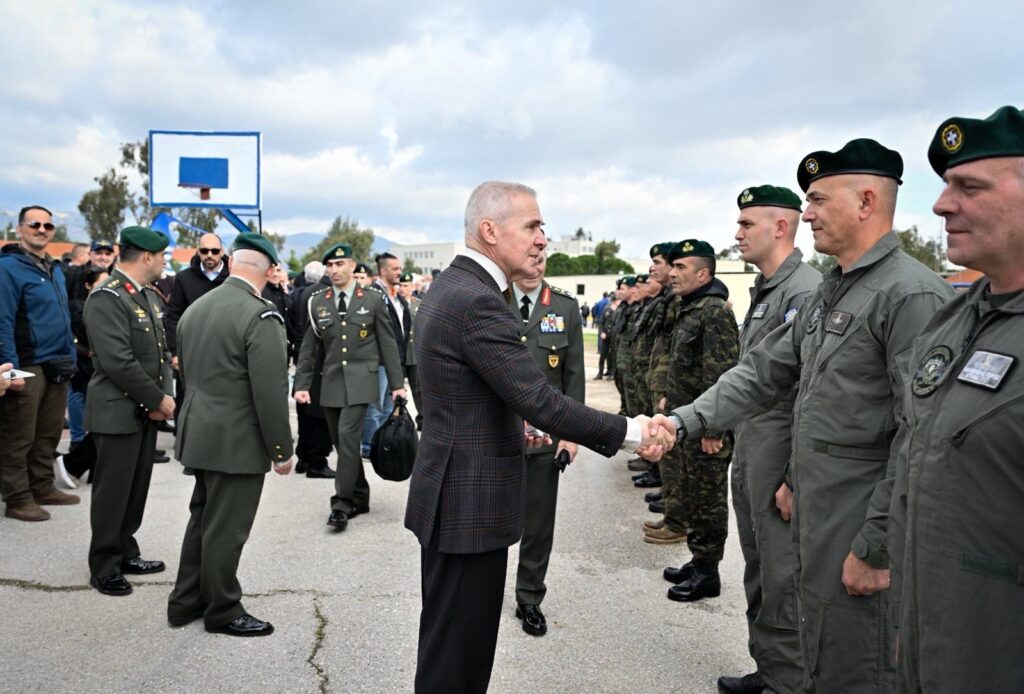 Εκεί, τον υποδέχθηκαν ο Αρχηγός του Γενικού Επιτελείου Στρατού, Αντιστράτηγος Γεώργιος Κωστίδης ως εκπρόσωπος του Αρχηγού Γενικού Επιτελείου Εθνικής Άμυνας, ο Διοικητής Διοίκησης Ειδικού Πολέμου Αντιστράτηγος Γεώργιος Μανουράς, ο Διευθυντής της Διεύθυνσης Ειδικών Δυνάμεων του Γενικού Επιτελείου Στρατού (ΓΕΣ/ΔΕΔ) Ταξίαρχος Χρήστος Σπανίδης και ο Διοικητής της ΣΧΑΛ, Αντισυνταγματάρχης (ΠΖ) Ευάγγελος Σγουράκης.