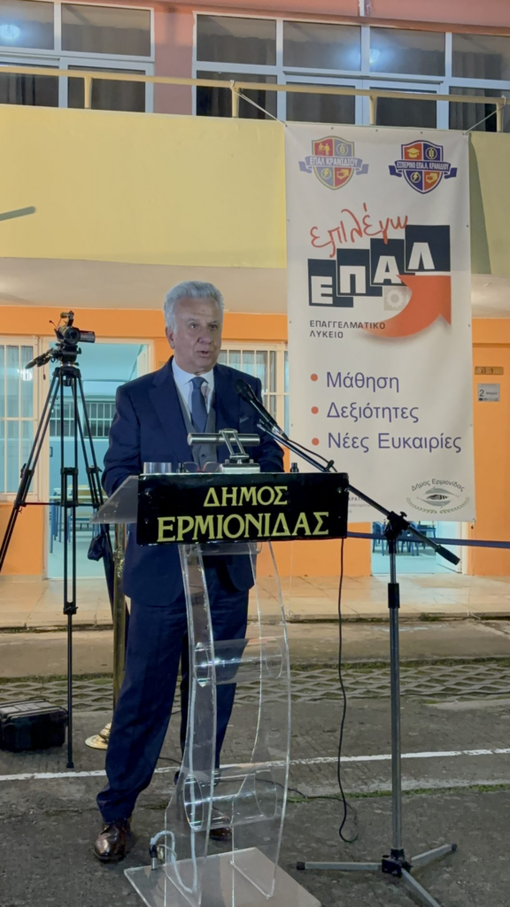 Χαιρετισμούς απηύθυναν ο Δήμαρχος Ερμιονίδας κ. Ιωάννης Γεωργόπουλος, ο Αντιπεριφερειάρχης Π.Ε. Αργολίδας κ. Βασίλης Σιδέρης, ο Δ/ντης της Δευτεροβάθμιας Εκπαίδευσης κ. Βασίλης Πολύδωρος, ο Υφυπουργός Αγροτικής Ανάπτυξης & Τροφίμων κ. Γιάννης Ανδριανός και η Υπουργός Παιδείας Θρησκευμάτων & Αθλητισμού κα Σοφία Ζαχαράκη.