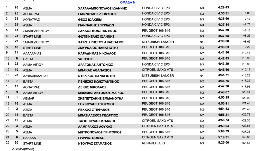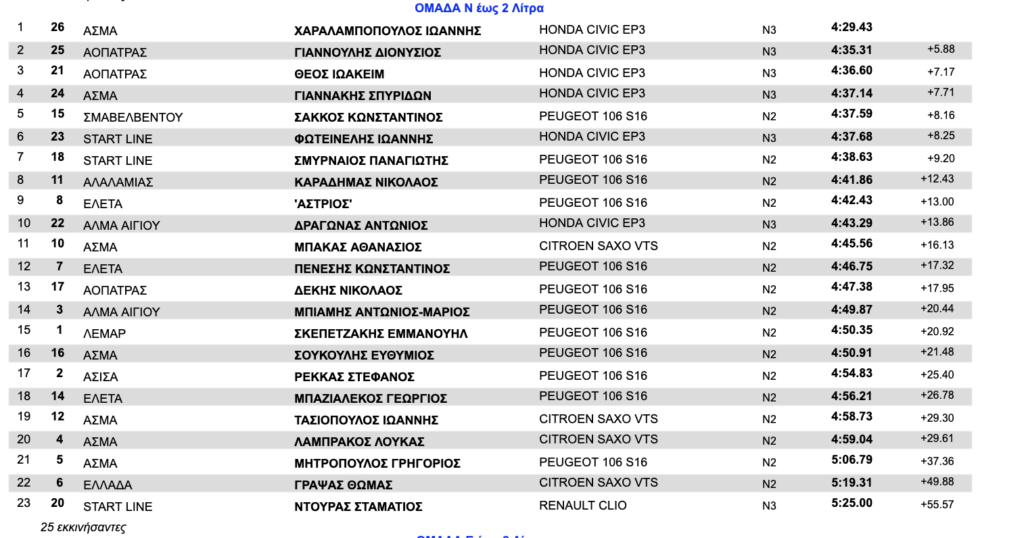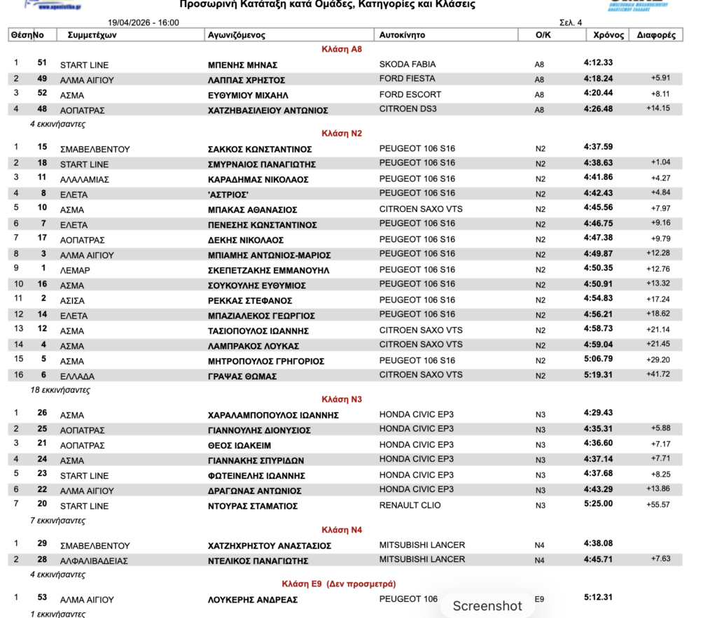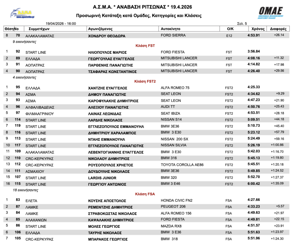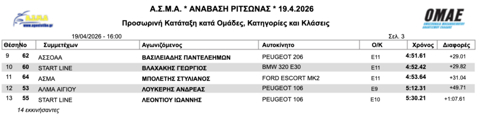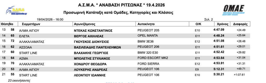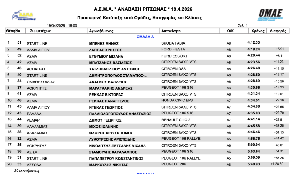 Ανάβαση Ριτσώνας 2026 – Προσωρινή κατάταξη 19/04/202619/04/2026 - by ΕΔΩ ΠΕΛΟΠΟΝΝΗΣΟΣ - Αφήστε ένα σχόλιο Ο πιο εμβληματικός αγώνας του θεσμού αποτέλεσε και φέτος πόλος έλξης για τους οδηγούς Προσωρινή κατάταξη κατά Ομάδες, Κατηγορίες και Κλάσεις
