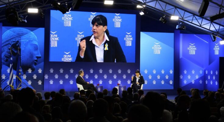 Απαντήσεις στις επικρίσεις που δέχεται ο θεσμός της Ευρωπαϊκής Εισαγγελέα, δίνει αυτή την ώρα η Λάουρα Κοβέσι, μιλώντας στο οικονομικό φόρουμ των Δελφών.