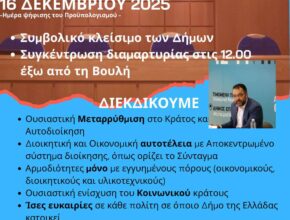 Ενημερώνουμε όλους τους δημότες και τους χρήστες των υπηρεσιών του Δήμου ότι την Τρίτη 16 Δεκεμβρίου 2025 ο Δήμος Επιδαύρου …